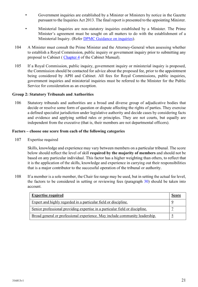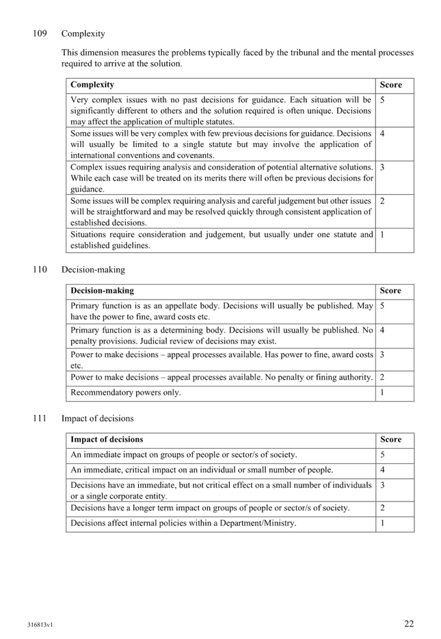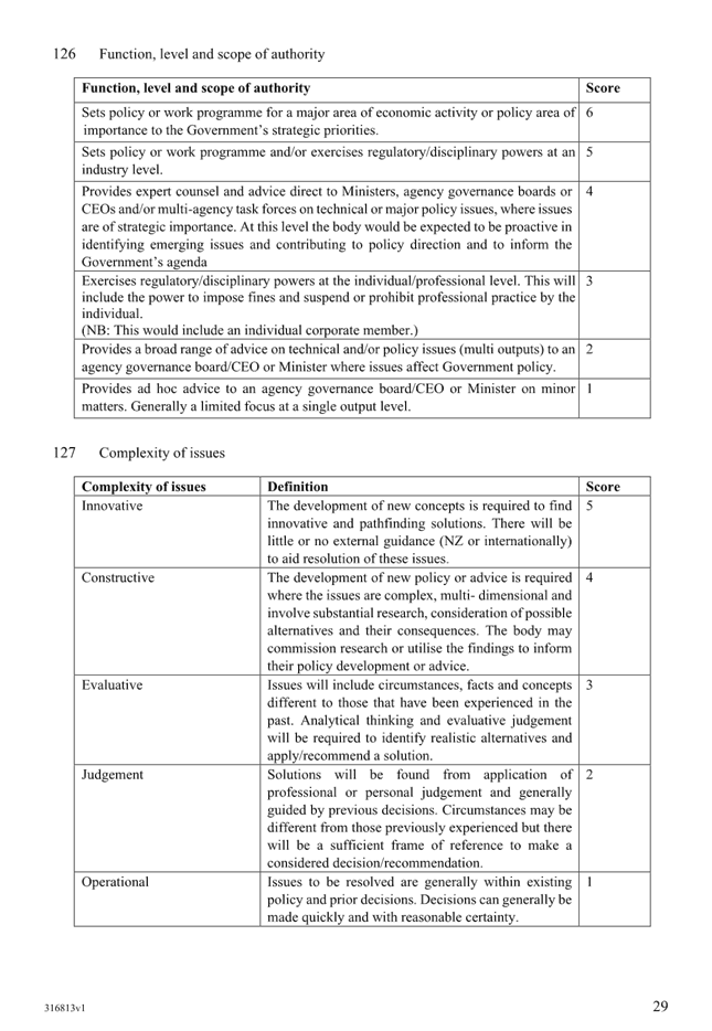 8 The Cabinet Framework provides the assessment process and criteria for calculating the remuneration level of non-elected members The assessment criteria are: