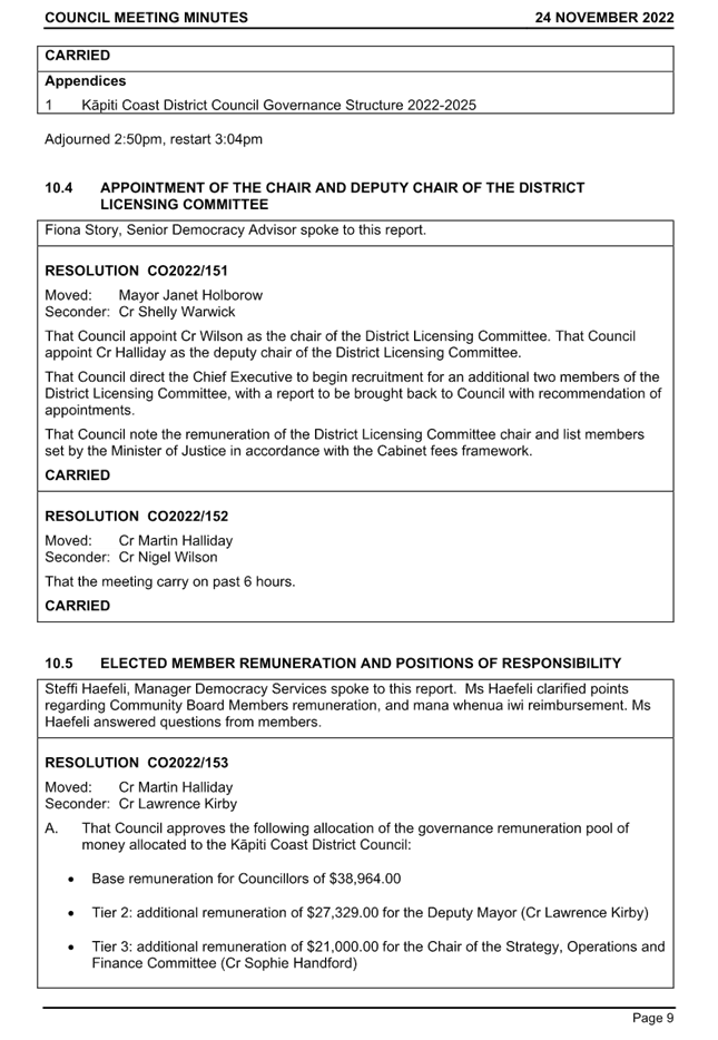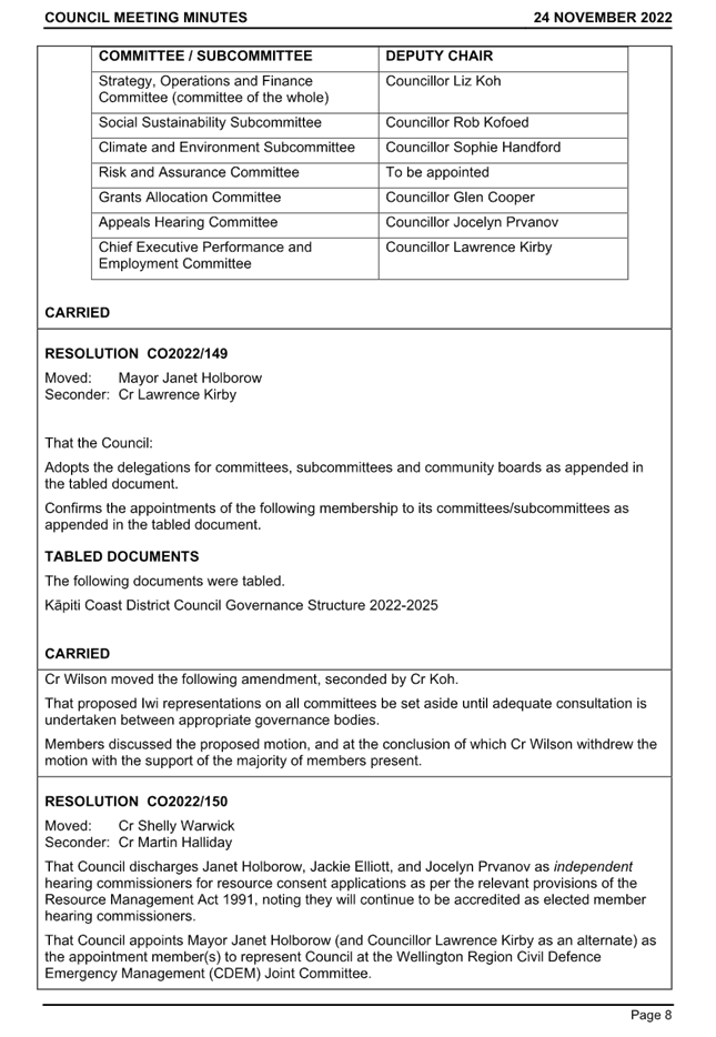 5 On 24 November 2022, Council adopted its formal Governance Structure and Delegations for the 2022-2025 triennium.