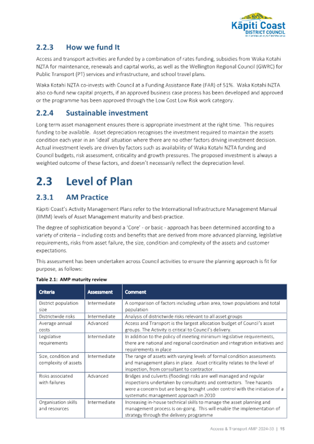 8.1 Access and Transport Asset Management Plan and Associated Funding