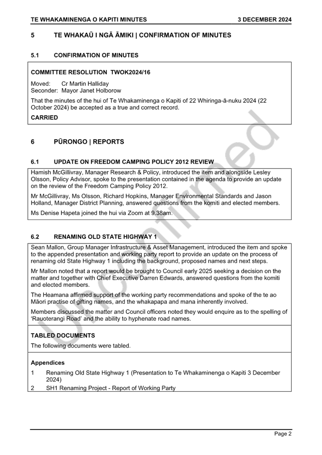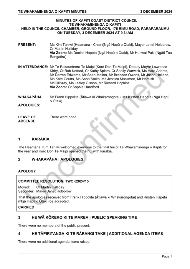 Whakaminenga o Kapiti Minutes - 3 December 2024 ⇩