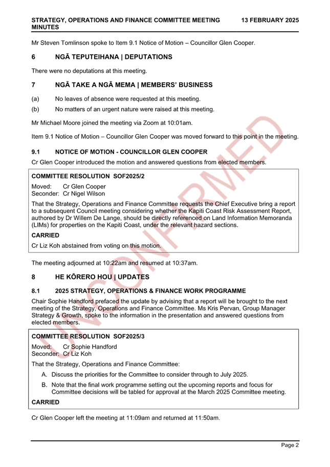 Minutes of 13 February 2025 Strategy, Operations and Finance Committee Meeting ⇩